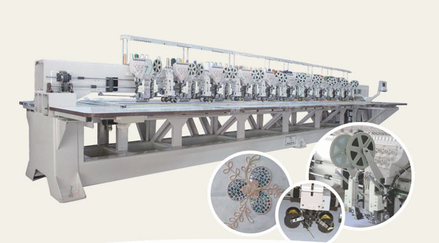 多功能組合繡,是我公司繼電腦亮片繡后推出的又一款新型機(jī),具有普通平繡、平繡亮片、繩繡、盤帶繡、緾繞繡等混合繡作功能。各種繡作 |